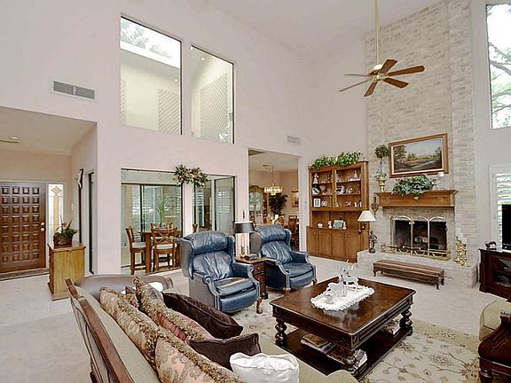 Wow! reduced $100,000! Outstanding custom home Priced to make it buyers own! Huge golf course cul de sac lot allows view of oak trees and green. Rare double mstr bedrooms down & gameroom & 1 up. Island kitchen has silestone/tile backsplash & lots of cabinets. The den is 2 story with beveled wall of glass view from gameroom up-There is a large deck from upstairs to enjoy the park like grounds & golf course. metal roof-3 ac's-2 Hot water heaters-shutters-circle drive/lovely landscaping! 09/03/15