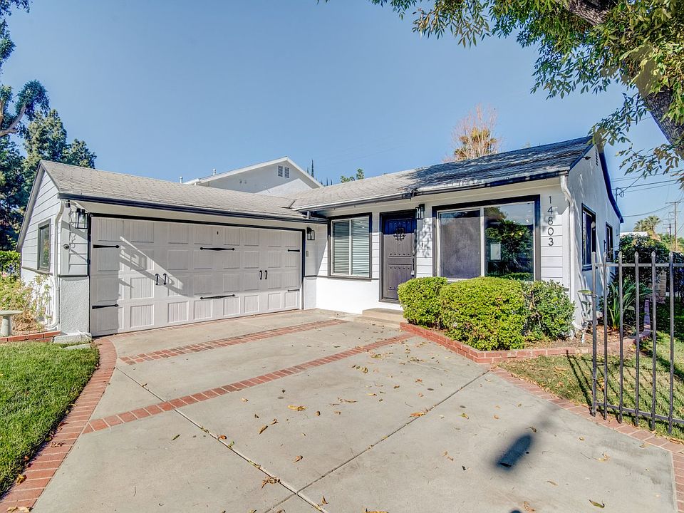 Nestled in beautiful Sherman Oaks is this 3 bedroom, 2 bathroom home, a turnkey home in every sense of the word. Enjoy 1,500+ sq ft of space and plenty of curb appeal, including welcome shade from the large oak tree. Natural light floods through the windows as you enter, and gorgeous engineered wood flooring expands in front of you. The kitchen features stylish, attractive wood cabinetry, a large island that is perfect for both hosting and cooking, and stainless steel appliances everywhere you turn. The dual sinks and countertop space alone are enough to make any cook blush. Each bedroom provides ample closet space (including a spacious walk-in closet!) and accompanying bathrooms replete with elegance and comfort. Not only does this home boast a sizable garage, there's also room in the back through a private gate to park and enter the property.