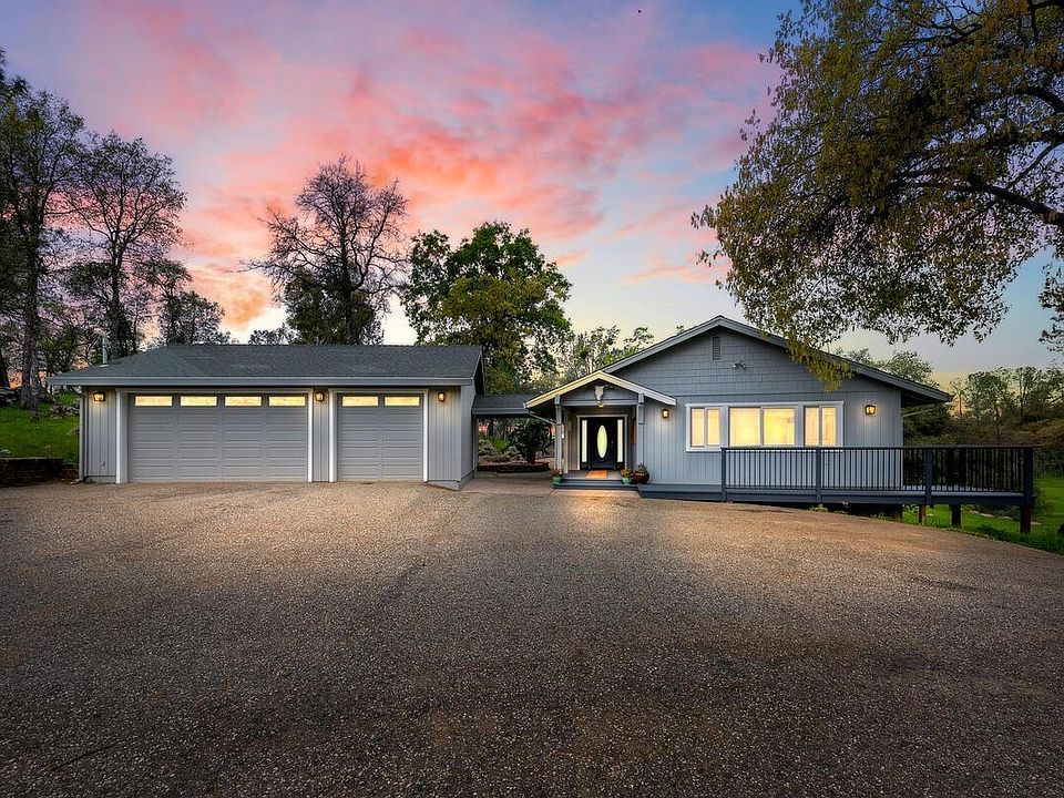 Nestled on 20 pristine oak studded acres are 2 FULLY PERMITTED HOMES. The 1st is an artfully remodeled single-story sanctuary. Home boasts tall ceilings, abundant natural light, open floor-plan, and custom charm that radiates throughout. Entertain effortlessly in the Chef's kitchen with open bar-dining-living and convenient access to over 1,000 sq ft of deck/patio spaces seamlessly blending indoor and outdoor living. Plenty of storage with a walk-in-closet, pantry, built-in cabinets and oversized (750+ sq ft) detached 3 car garage with a breezeway connecting to the main home. Architecturally intriguing 3,380 sq ft Quonset Hut, which includes a 1,200 sq ft - 1 bedroom plus office, 2 bath residence. PERFECT for multi-generation, work-live opportunity or income producer. Marvel at the spectacular rock outcroppings sprinkled throughout the 20 acres. This property is fenced and cross-fenced for your animals & homesteading dreams with many ideal locations for gardening. Enjoy the peace of complete privacy while still being only a few miles to Penn Valley & Grass Valley. Come see all 14804 Oak Ridge Rd has to offer.