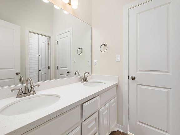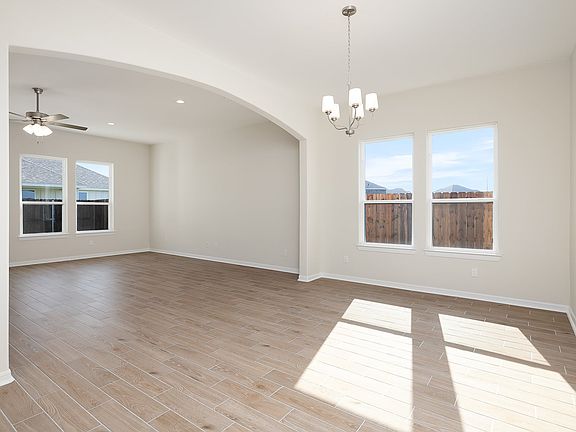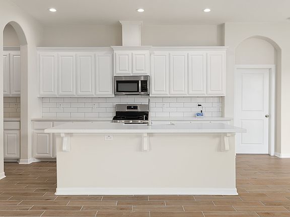 Upon entering the home, you're greeted by two bedrooms and a shared full bath. The heart of the home is the open dining area, family room, breakfast nook, and kitchen. Adjacent to the breakfast nook is your own covered patio overlooking your backyard. The kitchen features upgraded pure white maple wood cabinets, quartz countertops, and GE Choice Series Luxury Gas Appliances. For added convenience this home offers a mud room, butler's pantry, utility room, and a spacious three car garage. GE Choice Series Luxury Appliances- GasMatte Black Contemporary PlumbingQuartz CountertopsDriftwood Flooring throughout home*Photos do not represent the final production of the home