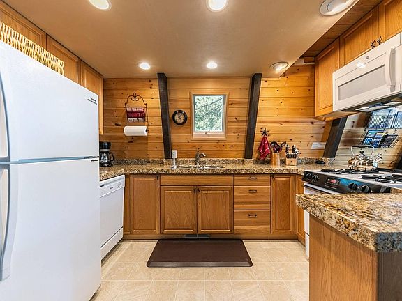 Relax in the living area after a day of adventure on the slopes, nestling beside the gas fireplace and sinking into plush recliners next to the 40" flat screen TV, offering entertainment from a vast DVD library. The quaint full kitchen and dining area provide the perfect setting for preparing and savoring a homemade meal. Step outside onto the expansive back deck, where breathtaking views of the pine forest and the 15th Fairway of the Tahoe Donner Golf Course await your admiration.