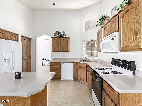 Covered patioSpacious kitchenCorner lotDesert landscapingNatural lightVaulted ceilings
