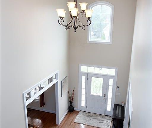 Lovely 5 bedroom, 2.5 Story Transitional home with 3rd level unfinished with roughed-in full bath & walk-in attic. Main Street's award winning Lancaster floor plan features hardwood floors and 9' ceilings on the first floor. Gourmet kitchen with granite counter-tops, butler's pantry, gas cook-top, wall oven, microwave oven, stainless steel appliances, upgraded lighting and trim package. First floor bedroom with easy access to hall bath would make a great guest room, or office. Master bedroom suite on 2nd level features tray ceiling, walk-out bay window, large master bath with walk-in closet and dressing area. Three more bedrooms, one with private bath, and 2 share a jack & jill bath. Also, a large entertainment/rec room and laundry room on second level. New carpet was installed on 2nd level, approximately one year ago. Also, double width asphalt driveway, large rear deck overlooking decorative wood fenced-in backyard. Won't last.