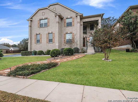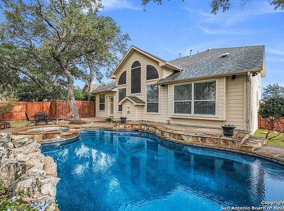 Stunning 2 story home with a pool in the gated community of Sonoma Ranch in Helotes. You are greeted with an abundance of natural light and soaring ceilings in the entry and formal dining area. Continue into the expansive first floor living area with floor to ceiling windows and the large kitchen with plenty of storage and countertop. You will love entertaining in this space! The master bedroom is a great size and features a tray ceiling. Master bathroom has both a walk in shower & soaking tub, double vanities & walk in closets. Upstairs you will find large secondary bedrooms, loft area & media room. Downstairs office could be a 5th bedroom, if needed. In the backyard you will find your own private oasis with sparking swimming pool & hot tub, huge patio & mature trees. You will never want to leave home!