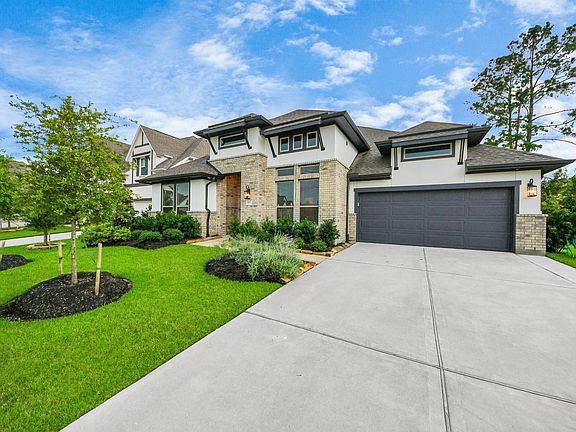 A single-story home built in 2022, offering 4 bedrooms, 3.5 bathrooms, and approximately 2,770 sqft on a 0.18-acre corner lot in the desirable Enclave at Longwood. Crafted with upgrades throughout, the modern kitchen shines with quartz counters, a striking rose-gold backsplash, spacious island, and a walk-in pantry. The grand entrance opens into a flexible layout featuring a mother-in-law suite, a Jack & Jill bathroom, and a cozy corner fireplace in the family room. Exterior enhancements include a covered back porch/patio, an expanded driveway, and a security system complemented by built-in cameras and a water-softening system. Nestled within the wooded, golf-course community of Longwood and zoned for top-rated Cypress-Fairbanks schools, this home combines luxury, convenience, and thoughtful design.