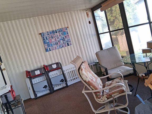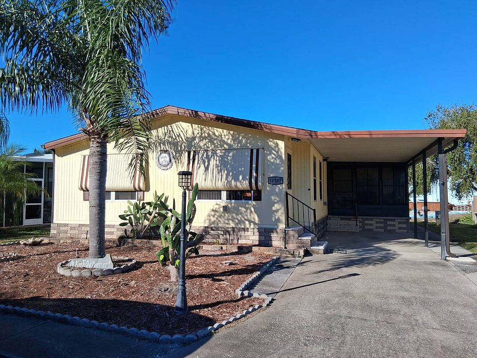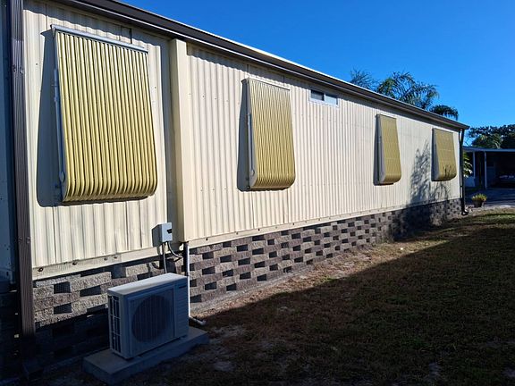 Welcome to Oak Bend in sunny Hudson, Fl a gated 55 plus community. This lovely well maintained 2-bedroom, 2-bathroom home features 1100sqft of living space and comes completely furnished including all pots, pans, linens, furniture, as well as three TV's (2 are under a year old) move in ready just bring your toothbrush and clothes. Many upgrades have been completed since 2023 including all new flooring throughout vinyl plank & tile (except living room), all over painting (except living room), new A/C Thermostat, all new windows throughout, new hurricane shudders. Enjoy cooking in kitchen or sitting down for coffee with an attached breakfast table. The master bedroom features a new Mini Split A/C, a 1-year-old Mattress Firm adjustable king size bed, walk-in closet and attached en-suite bathroom with tile flooring. Invite friends & family to stay in the roomy guest bedroom across from the guest bathroom. Enjoy doing laundry indoors. This home has a great A/C system as well as a separate humidity control system. Enjoy sitting on the enclosed lanai visiting with neighbors. Plenty of extra storage with an attached storge building. Amenities in Oak Bend include Clubhouse with gatherings, pool, shuffleboard, fitness, 2 PET minimum under 25lbs with park approval. Monthly lot rent is $644.00 which includes trash and lawn care. Before purchase you must submit a background check, this is for the safety of all residents and have a valid driver's license or ID card.
