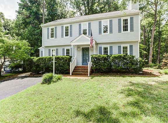 Welcome to the award winning Woodlake Subdivision and this wonderfully well maintained Colonial located at 14809 Acorn Ridge Road. Walk into your new home to find, hardwood floors throughout the formal rooms along with crown and chair rail moldings. The den has new solid surface flooring, a brick fireplace and french doors that lead out to your azalea filled backyard. The kitchen also sports new flooring, a tasteful stone backsplash, Stainless Steele appliances, bay window and large pantry. The master suite offers you new solid surface flooring, a walk in closet and a master bath with tiled floors and linen closet. The other three bedrooms each have newer carpet and generous closets. The hall bath offers tiled flooring and marble vanity. For storage choices, there is a walk up attic off of the second bedroom, a detached shed and an attached shed. With vinyl siding, vinyl windows and Trex decking, this home is practically maintenance free. Located in a cul de sac, the pets and kids can play safely outdoors. Outstanding Chesterfield County schools with a convenient location to activities and shopping make this home a must see on your tour.