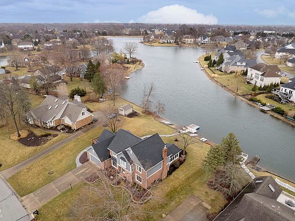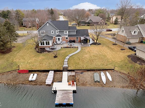 LAKE FRONT w/ dock, nearly .5 acres, 4 BR & 2.5 BA Carmel home (Westfield Schools) in sought after Village Farms neighborhood. Rare find in this location - check out virtual tour link in listing to view aerial flyover & interior highlight video! Impressive poured patio w/ pergola, multiple entertaining zones, sidewalk & steps leading to dock access for 15-acre stocked lake. New roof, gutters, exterior paint, water softener. Professional landscaping & exterior lighting, 6-zone irrigation, storage shed. Enjoy water views from spacious Sunroom w/ new LVP floors, remote blinds, & mini-split HVAC. Completely remodeled Kitchen has new cabinets, granite counters, tile backsplash, upgraded stainless appliances, gas range, pantry w/ roll out shelves, & custom island w/ storage that doubles as eat-in dining table. New 3/4" white oak engineered hardwoods on main level, Mudroom w/ boot bench (additional laundry hookups behind bench), utility sink, & cabinets, and updated Powder Room. Family Room w/ new gas insert fireplace, tile surround, floating shelves, custom millwork, new carpeting. Private main level Home Office w/ sliding doors & formal Dining Room. Primary Suite has a vaulted ceiling, walk-in closet, ensuite bath. Upstairs Laundry. 3 more spacious BRs w/ ceiling fans & big closets. Walk-in attic storage. Finished 2+ car garage w/ heater & separate workshop & storage area. Enjoy fishing from floating dock, paddle board, paddle boat, or just relax! HOA amenities include pool, tennis, walking paths, clubhouse.