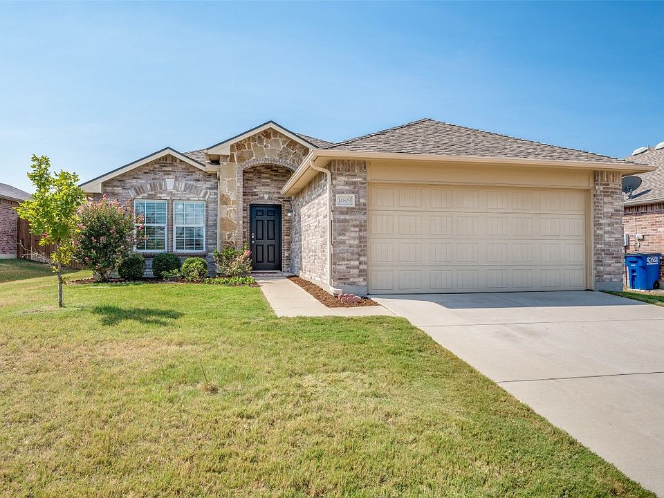 Back on market -buyer financing fell through. Beautifully remodeled single story home with all new paint, carpet and engineered wood flooring. HVAC condenser replaced & Roof replaced 2017. The spacious living areas all have wood flooring and the living room has a wood burning brick fireplace and opens to the kitchen. The kitchen features granite, an electric range and stainless steel microwave and dishwasher. Entertain with ease! Lots of Windows allow natural light in. The Owner's bedroom has an ensuite bath and two secondary bedrooms share a bath. Nice size backyard for play or pets. Frisco Ranch subdivision features a community pool, playground, and walking trails and near tons of shopping & dining! Close to the new PGA facilities and the up and coming Rail Entertainment District. Sought after Frisco ISD. No Survey. buyer to purchase. Refrigerator conveys.