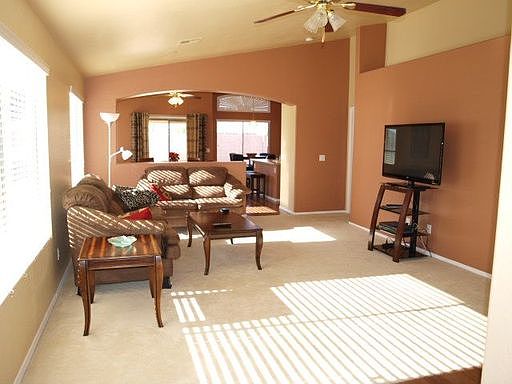 $2000 Savings-Book Now! Beautiful furnished home available-close to Surprise Stadium!**NOW OFFERING A SPECIAL DEAL! A $2,000 savingsBook November through the end of January for only $1500 a month!Book now for Spring Training 2015! This awesome 4 bedroom 2 bath home is conveniently located near the Royals and Texas Rangers training facility plus a city park, rec center with tennis courts, pool, library, restaurants and shopping! Located in Ashton Ranch subdivision which features 3 refreshing swimming pools available for your use (Pool is closed October 27th-May 1st). This home has an open airy living area, wood flooring in all the right places with custom paint and vaulted ceilings. Enjoy a relaxing and private backyard. Security door and system. This is a furnished home and very clean to make for an enjoyable stay! Rental Rates:November: $2000December: $2000January: $2500February 1 - 11th $1200April - Sept: $1500 a monthCall for daily or weekly rates.Half down at booking confirmation the other half due upon arrival.