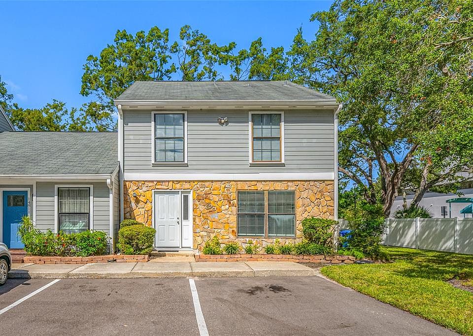 Ask about $0 (ZERO DOWN) financing! Up to $9,000 towards buyer closing costs with acceptable offer! This generously sized townhome is 1,600 square feet and lives like a single family residence. An end unit, this home is located at the end of this quiet community and features a large communal grass area right outside the unit for your pets or outdoor play! This home features an enormous renovated kitchen with stainless appliances and quartz counters, 2 large living areas with LVP flooring throughout, and a half bath downstairs. Upstairs you'll find brand new carpet throughout, new fixtures and vanities in the bathrooms, and ample bedrooms including a huge primary suite with two closets. Off the kitchen you can walk right out the sliding doors onto a private screened patio and right out onto the yard. 2 assigned spaces means this home has all of the conveniences of a detached property, but with the easy maintenance living of a townhome. At this price this property is a compelling, move-in ready opportunity to live in Tampa, with close proximity to just about anything you could need. Minutes to USF and a plethora of stores, grocery, restaurants, schools, and anything else once could want!