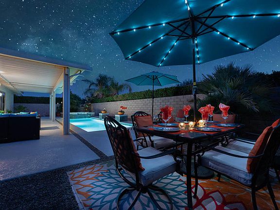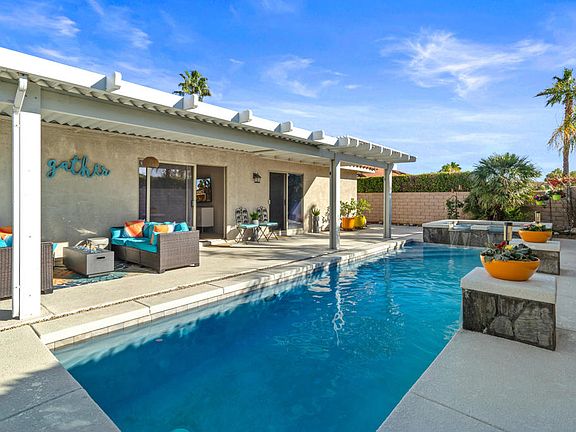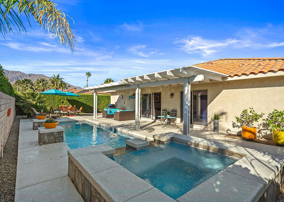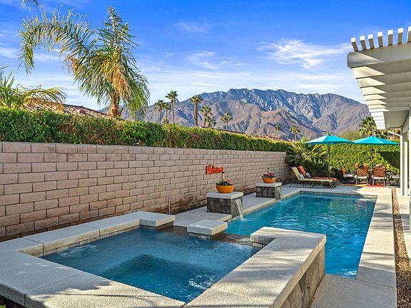 Turnkey Desert Sanctuary: Fee Simple, Pool Home with Mountain ViewsThe Highlights:Fee Simple Land: You own the land--no land lease fees.Investment Potential: Short-Term Rentals are allowed.Move-In Ready: Offered Turnkey Furnished.The Property: Discover the quintessential Palm Springs lifestyle in this impeccably maintained, single-level retreat nestled on a quiet cul-de-sac. Meticulously cared for by the current owners since 2011, this home blends tranquility with modern functionality.Interior Features: The thoughtfully designed split floor plan ensures maximum privacy, separating the primary suite from the guest quarters. The heart of the home is the upgraded kitchen, featuring a spacious pantry and seamless flow for entertaining. The primary retreat offers a private en-suite bath, creating a luxurious end-of-day escape. Practical conveniences include an indoor laundry room, ample storage, and a spacious 2-car garage.Outdoor Oasis: Step outside to your private paradise. The backyard frames spectacular South and West-facing mountain vistas--the ultimate backdrop for desert living. Whether you are hosting al fresco dinners on the Aluma-wood patio or unwinding in the sparkling saltwater pool and spa, this outdoor space is designed for resort-style relaxation.