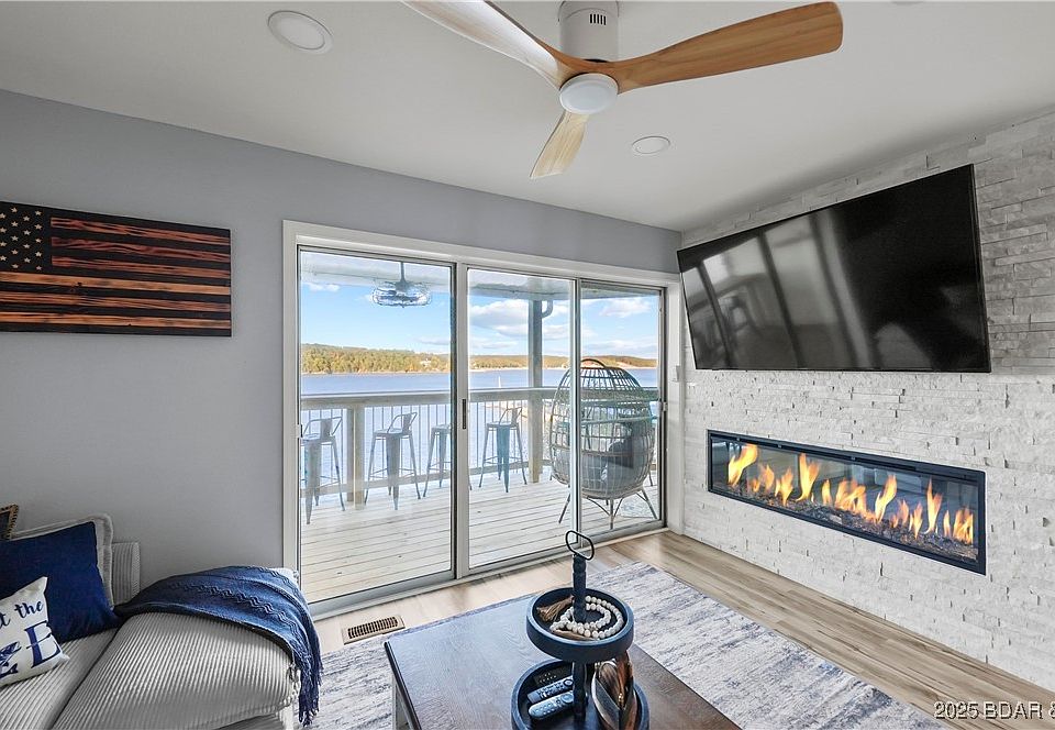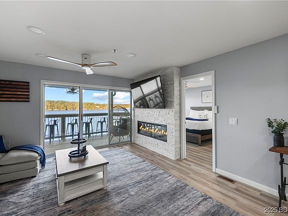 Proven Vacation Rental with over $108K in gross revenue is the Perfect blend of lakefront luxury and location at Ledges Condos in Osage Beach, Missouri. This updated 3 bedroom, 3 bath waterfront condo offers incredible main channel views and the ideal setup for both personal use and nightly rentals. Featuring a 10x30 boat slip and PWC slip, it’s fully equipped for lake living. Ledges is one of the most popular complexes at Lake of the Ozarks thanks to its prime location by land and water, close to shopping, dining, golf, and Margaritaville. Step into a light-filled floor plan with new LVP flooring, a sleek linear fireplace and panoramic lake views. A Crisp white-on-white design keeps the kitchen feeling fresh, airy and timeless with a seamless blend of cabinetry and appliances that feels effortlessly elevated with theater seating and game room. The covered lakeside decks are perfect for sunset cocktails or morning coffee. Resort-style amenities include a sandy beach, two pools, swim dock, trailer parking, and shoreline boardwalk. Whether you’re looking for a turnkey vacation rental, weekend retreat, or full-time residence, this Ledges condo captures the best of Lake of the Ozarks.