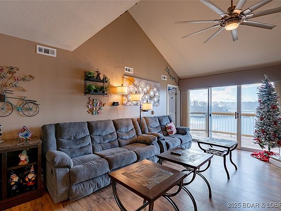 Seller now INCLUDING 1st quarter 2026 HOA dues paid!!! Live the lake life in the heart of Osage Beach at the 21MM! This top-floor, 3 bed / 2 bath loft condo offers 1,450 sq ft of remodeled, turnkey living with vaulted ceilings, a remodeled kitchen, new electric fireplace heater, and an oversized master suite with private bath. The loft includes a second living area and nonconforming 3rd bedroom. Enjoy stunning cove and main channel views from the deck with retractable awning. Never rented—only enjoyed by the owner. Upgrades include new LVP flooring (Aug 2024), mattresses & couches (July 2024), A/C compressor (June 2024), TVs (July 2024), new lighting (April 2025), and new laundry door (Jan 2025). Amenities include 2 pools, a sandy swim beach, and a playground. Located near state park and coves for boating, tubing, and wakeboarding. Parking passes, keyless entry, and more included. 10x30 boat slip with 6,500lb Galva-lift and PWC slip/lift included. Ideal for a personal escape or VRBO investment—just bring your suitcase and start enjoying lake life!
