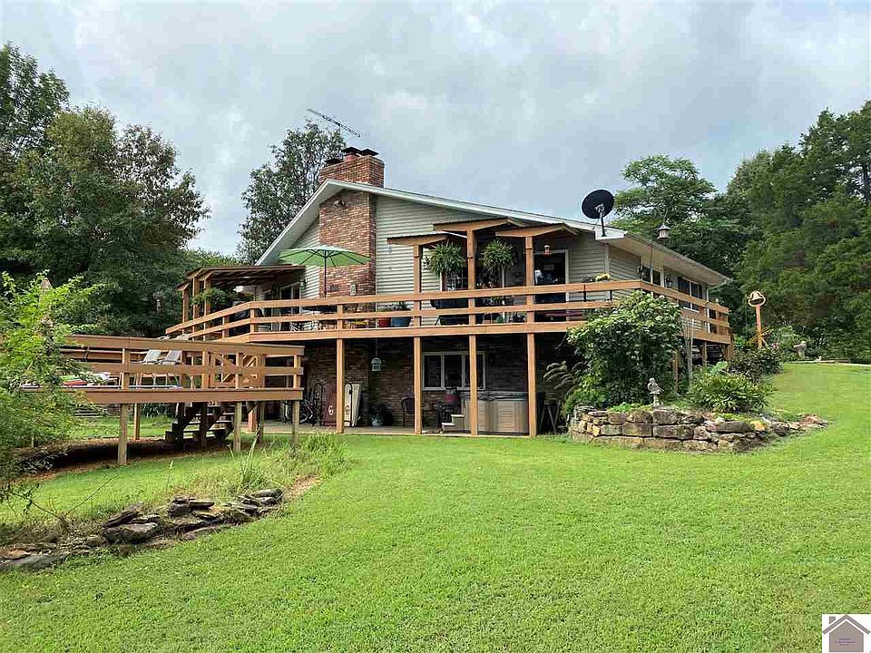 Let's check your wish list--quiet, secluded 3 bed/3 bath home on 11 acres (mostly wooded) with your own private lake and no neighbors in sight. Lovely open living/dining area with wood burning fireplace on main floor as well as large gathering room with fireplace in the walk out basement. Both fireplaces have heatilator inserts. 2 ensuite bedrooms on main floor and huge bedroom and bath downstairs. Sit on your deck overlooking the pool, go for a leisurely swim or just relax in the hot tub as you enjoy watching all the wildlife in your own backyard. In the evenings, gather around the fire pit or go fishing in your private lake. Well maintained with new HVAC in June 2020. 15,000 gal. cistern for lawn and garden. This one won't last long!