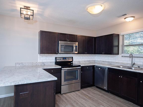 Great rental offering 3 bedrooms, 2 bathrooms, 2 car garage, and easy access to downtown, restaurants, shopping, and Hwy 63/70. Open floor plan with a split-bedroom design and lots of natural lighting. Living room boasts a vaulted ceiling and gas fireplace with a smooth transition into kitchen and dining. Double patio doors give access to a fantastic, covered patio that overlooks a private wooded backyard. No pets, smokers, or undergrads. Tenants must pass landlord's credit check, as well as a debt, income, criminal, and background check.