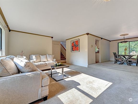 Don't miss this private home with many recent updates including roof, gutters, furnace, and exterior paint.. You will enjoy the open floor plan with large living room with wood fire place, spacious dining area, updated kitchen with eating area with sliding door to the large entertaining deck with covered area for BBQ. Enjoy the private maturely landscaped back yard with fish pond. The upstairs features a large main bedroom with spacious private bath. Two additional rooms, and bathroom. The lower level has a rec room with sliding door to a paved patio and walk way for easy access to the back yard. You will enjoy this well maintained home, so come make it yours!