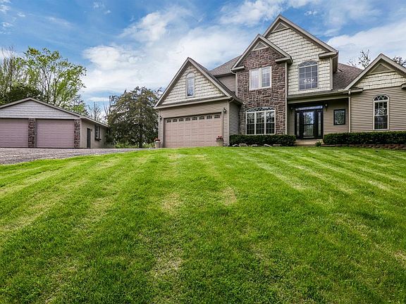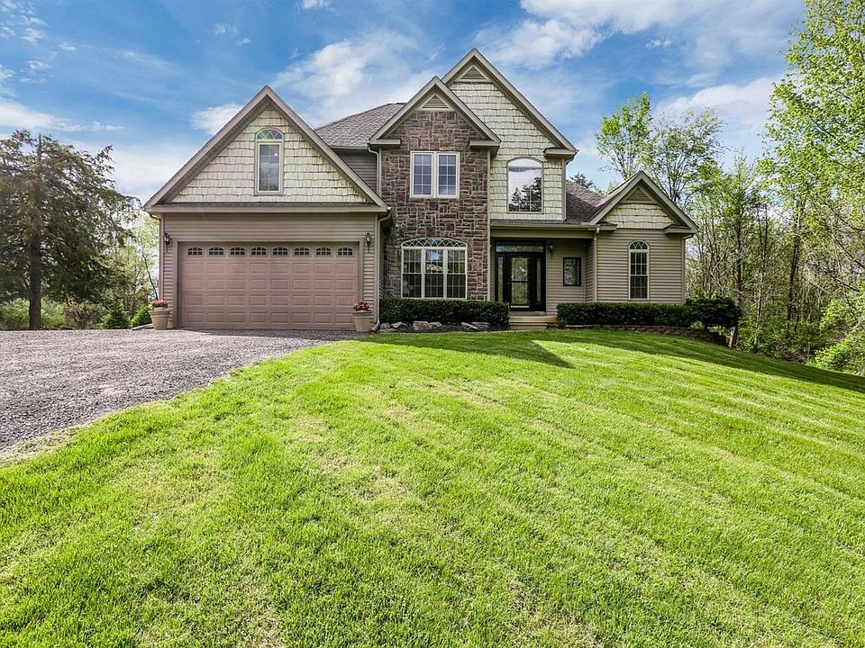 Welcome home to this gorgeous split level home surrounded by just over 5 acres with plenty of green space and serene natural views from every unbuildable angle! This home offers a main floor master with ensuite and 2 additional generously sized bedrooms upstairs -one bedroom has a balcony overlooking the yard! The two-story great room is warmed by a stone fireplace, hardwood floors & adjoins the center island eat-in kitchen. Plenty of windows showcase the abundant nature outside and let in the sunshine. The full unfinished basement w/9 ft. ceilings provides a TON more living & storage space. The cherry on top? It's the 30x40 outbuilding with capacity to hold 6 cars. Outside, you'll be treated to a 50 foot long deck, gas line for a grill and plenty of acreage to hunt deer, turkey and rabbits! Recent updates include: painting throughout and a maintenance-free asphalt milling driveway. Enjoy all the area can add to your lifestyle w/shopping, restaurants and more. This one is a DO NOT miss, schedule your private showing today.