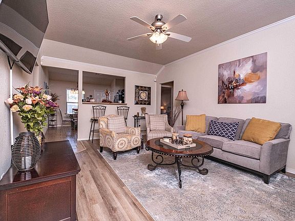 Hurry to see this adorable jewel. One owner home shows lots of love and care. Cozy living room, cute kitchen with stained cabinets and three spacious bedrooms. Primary bedroom is large and perfect for relaxing. Big walk-in closet. Flooring has been updated throughout. No carpet! New air unit this past summer. Fenced yard perfect for family gatherings and double garage. Agents see remarks.