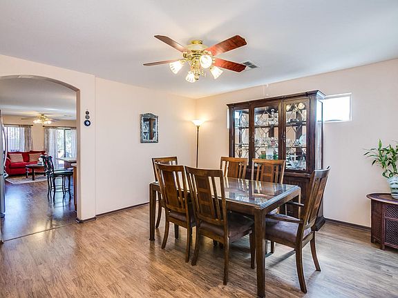 ~~LOCATION,LOCATION,LOCATION~~ This lovely home is located in the popular Ashton Ranch Community which features 3 community pools and close to dining, shopping, entertainment, library, Surprise park, and Surprise Rec center, and Aquatic Center. This home features 3 bedrooms, 2 full bathrooms, formal dining room & living room area, spacious kitchen w/ lots of cabinet and counter top space, and island, and pantry. Also, refrigerator conveys with sale. Great room concept with lots of space, sliding glass door leads to covered patio, and nicely landscaped and good size backyard. The home has nice Laminate floors throughout except bathrooms have tile, ceiling fans, updated lighting, custom paint, coach lights on exterior of home, A/C condenser replaced in 2012. Will not last long! Hurry!