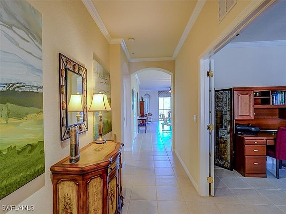 Nestled in the heart of Southwest Florida, this stunning third-floor penthouse condo in the highly sought-after Reflection Key community offers an unparalleled blend of luxury, convenience, and vibrant resort-style living. Whether you're looking for a seasonal retreat, an investment property, or a full-time residence, this turnkey furnished home provides everything you need to embrace the Florida lifestyle. From the moment you enter, you'll be captivated by the impeccable attention to detail and the tasteful, high-end furnishings that complement the thoughtfully designed interior. This two-bedroom, two-bathroom condo with a den boasts a spacious and functional layout, ideal for both relaxation and entertaining. The open-concept living and dining area is bathed in natural light, creating a warm and inviting atmosphere. Crown molding throughout adds a touch of sophistication, while the solid surface countertops in the kitchen and bathrooms enhance the home's modern elegance. The well-equipped kitchen features ample cabinetry, modern appliances, and a large Island that seamlessly connects to the main living space—perfect for casual dining or entertaining guests. The primary suite serves as a private oasis, featuring large windows that allow in plenty of natural light. The en-suite bathroom is a retreat of its own, complete with dual sinks, a walk-in shower and garden tub, along with plenty of closet space. The second bedroom is equally well-appointed and provides comfort and privacy for guests. The den, a versatile space, can be used as an additional bedroom (with sleeper sofa), office, or media room, accommodating a variety of needs. One of the highlights of this penthouse condo is the screened-in lanai, offering a breathtaking view of the tranquil lake. This peaceful outdoor space is perfect for enjoying your morning coffee, unwinding after a long day, or hosting intimate gatherings with friends and family. The gentle sound of the water, combined with the lush greenery, creates a sense of relaxation that makes every moment feel like a vacation. This condo offers a covered carport for your vehicle, ensuring protection from the Florida sun. Additionally, extra storage is conveniently located on the same floor, just across from the elevator, making it easy to store seasonal items, beach gear, or sports equipment.