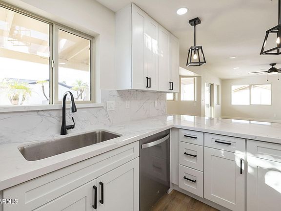 Welcome Home! This beautifully updated 3 bed/2 bath home combines modern style with everyday comfort. Step inside to discover brand-new flooring, freshly painted interiors, a cozy electric fireplace, and spacious living areas filled with natural lighting. The kitchen shines with all new s.s. appliances, gorgeous cabinetry with contrasting hardware, and a bright, open feel perfect for cooking & entertaining. Both bathrooms showcase custom-tiled showers & modern updates that elevate the home's contemporary design. The primary suite offers private backyard access, ideal for stepping out to enjoy the pool. Enjoy AZ living at its best under the covered patio & gazebo area, complete with a mini golf turf pad for fun and relaxation.