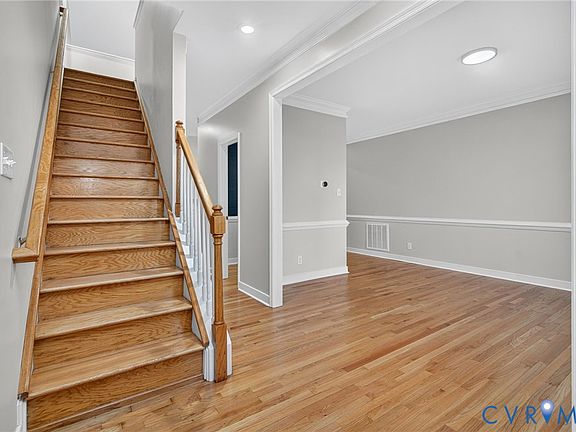 Welcome to 14813 Mariners Way! This beautiful home features 4 spacious bedrooms, 2.5 bathrooms, hardwood floors throughout the main level, a gas fireplace, and brand-new plush carpeting and padding upstairs. The open living room creates an inviting atmosphere to entertain, and the kitchen offers ample countertop and cabinet space, as well as brand new stainless-steel appliances. The primary level includes a formal dining room, a spacious sitting room with crown molding, a formal living room with crown molding, a private office, and two-story ceilings in the great room. The primary bedroom features an attached bonus room or extensive closet area, as well as an ensuite primary bathroom with a soaking tub and primary shower. Additional amenities include a finished attic or loft area on the third level and a professionally painted interior. This home has been beautifully renovated and is positioned on a cul-de-sac which offers privacy while also being conveniently located near shopping, dining, the Swift Creek Reservoir, and Route 288. Come see this beautiful home today!