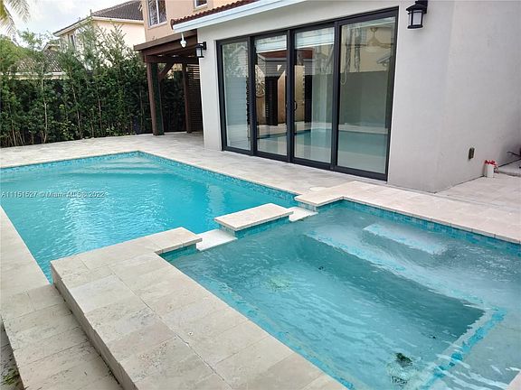 Beautiful pool, home completely remodeled. A house to enjoy with a jacuzzi, porcelain floors, waterfall countertop in Calacatta Quartz, top of the line appliances. Two master bedrooms, one is on the first floor with separate entrance perfect for the in-laws, home include custom addition perfect for a game room, family room, that opens to a covered terrace and pool area. See to believe. No association approval, rent includes maintenance of the pool, jacuzzi and landscape.