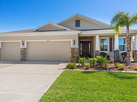 D.R. Horton's Laurel floorplan 3 BR/2 BA home, Extended Lanai and, wait for it...a 3 Car Garage! This almost new home has been maintained in pristine condition and is waiting for its new owner. Master Suite is in the back of the home for privacy with Tray Ceiling in Bedroom and spacious Master Bath with Garden Tub and Separate Shower. The Guest Bedrooms are on the other side of home separated by Guest Bath. The Kitchen has plenty of expresso wood cabinets, stainless appliances, Granite counter tops with Breakfast Bar all to make a picky chef very pleased! More to know about this great home but you'll have to come and see. This home is located in the back of the community with a long view of the Lake & fountain. Del Tierra is a great community with no CDD & close to I-75. Property being sold As-Is and comes with a 13 month HWA Home Warranty up to a value of $475