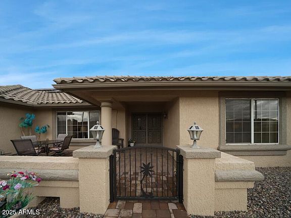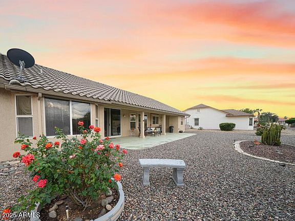 This popular floor plan offers exceptional natural light and a thoughtful layout. The home features an extended primary suite with a charming bay window, creating the perfect retreat with room for a sitting area. A versatile office/hobby room provides added flexibility, along with abundant extra storage throughout. Enjoy a sunny, inviting kitchen with its own bay-window breakfast nook—ideal for morning coffee. The formal living and dining areas flow seamlessly, offering plenty of space for entertaining. Step outside to a covered, extended patio designed for year-round outdoor living. Located in a highly desirable area close to four golf courses, shopping, restaurants, banks, and full medical services. Community amenities include two recreation centers with heated pools, spas, and more