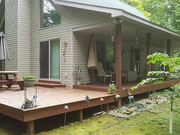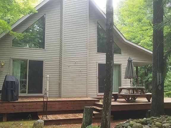 Nothing makes you feel more at home than this cabin-like home, nestled away in the woods. This 2 bedroom, 2 bath home sits in a natural setting where wildlife abounds. You can enjoy the outside beauty, while have an abundance of natural light streaming thru the over-sized windows in the living room. In the winter there's a natural wood fireplace to snuggle up next to & stay cozy. After you've finished swimming in the nearby Grand Traverse Bay, wash off by using the outside hot/cold Shower located in the back yard. In your down time head out to the 3 car garage to make something crafty in the workshop! Although you are surrounded by nature, the Village of Elk Rapids is less than Five minutes away...fine dining, shopping and award winning schools. You are fully protected against any type of Power outage with a custom, installed GENERAC Guardian 11kW Home Backup Generator. Whether you prefer savoring the relaxing days of summer/fall at the nearby Public Access sandy beach or spending your evenings watching the glorious sunsets, this terrific house is situated in a peaceful setting at an affordable price.