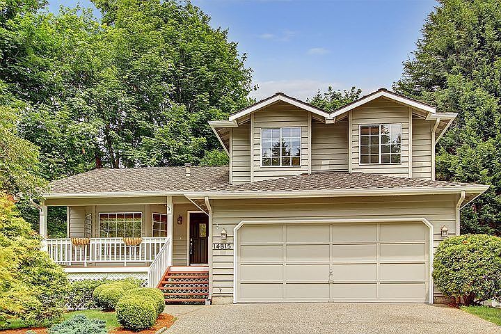 Tri-level house with curb appeal. Lower level is only 3 steps down so you have the feel of an open floor plan. All three bedrooms are on the upper level. Large master with double sinks, two-headed shower, and walk in closet. Jetted tub is in the 2nd bathroom. Neighborhood Description Single street neighborhood with no two identical houses in the neighborhood. Great views of Lake Washington and the 520 floating bridge from the top, especially on Independence day. Located in south Bothell with close free-way access,yet far enough away we don't hear it. Kirkland, Woodinville, Kenmore, and Bellevue, are all easily accessable within a few minutes drive.