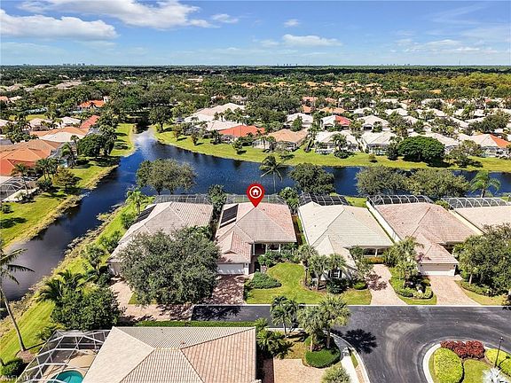 Discover this stunning 4-bedroom + den, 3.5-bath lakefront pool home in the highly desirable gated community of San Remo at Palmira—where timeless architecture meets resort-style living in the heart of Bonita Springs! From the moment you arrive, the lush tropical landscaping, paver driveway, and inviting front porch framed by graceful columns set the tone for what awaits inside. Step through the glass entry door into a bright and open floor plan filled with natural light, soaring ceilings, and tasteful finishes throughout. The heart of the home centers around a spacious great room and beautifully updated kitchen featuring granite counters, stainless steel appliances, custom cabinetry, and large and spacious ideal for entertaining. The dining and living areas flow seamlessly to the expansive lanai, where sparkling pool and spa views overlook a tranquil lakefront setting—perfect for relaxing mornings or sunset gatherings. The owner’s suite offers serene water views, dual vanities, and a walk-in shower, while guest rooms provide comfort and privacy for family or visitors. The den/flex room is ideal for a home office, reading nook, or hobby space. Elegant details like plantation shutters, crown molding, pendant lighting, and neutral tile flooring add a touch of sophistication throughout. Enjoy the perfect balance of privacy and community living in San Remo, a DiVosta-built neighborhood known for its solid concrete construction, tree-lined streets, and small-town feel. Residents enjoy access to resort-style amenities including a clubhouse, fitness center, heated resort pool, pickleball and tennis courts, and scenic walking paths winding around sparkling lakes and charming footbridges. Located just minutes from Coconut Point Mall, downtown Bonita Springs, pristine Gulf beaches, and RSW Airport, this home captures the essence of Southwest Florida living—comfortable, convenient, and full of charm. Don’t miss your opportunity to own this inviting lakefront retreat at 14815 Carducci Ct—where every day feels like a vacation.