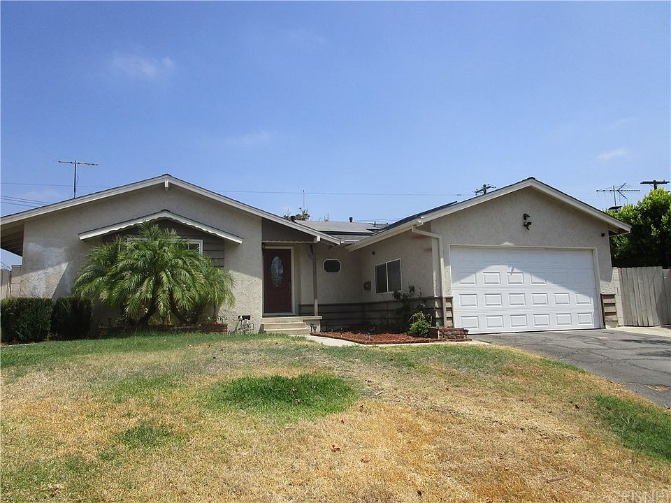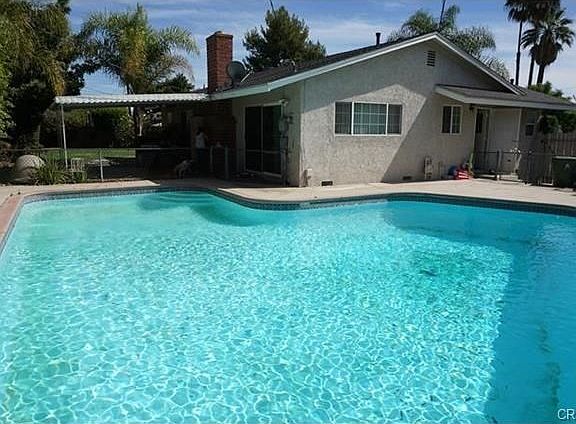 Your Private Oasis is found in this effervescent 3 Bedroom, 2 Bath mid century Pool home! Upon entry the eye is drawn to the magnificence introduced in the vaulted ceilings and the natural light streaming throughout the open floor plan. Other highlights include hardwood flooring throughout with the exception of tile flooring in baths and kitchen. Sumptuous brick surround gas fireplace in the living room, to embellish your romantic dinners, galley kitchen includes stainless steel stove, dishwasher, refrigerator, large pantry, soft close wood cabinetry, and granite countertops. Laundry area includes soft close cabinets and stainless steel oversized LG washer and dryer. Each of the 3 Bedrooms are perfectly sized for purpose, Baths are newly remodeled with modern shower over tub and walk in shower in guest bath also inclusive of soft close vanities. Energy efficiency reigns supreme with the advanced Solar System, Central Air Conditioning and Lighted Ceiling Fans! Two Car Attached Garage is perfect for two compact SUV vehicles and offers an abundance of storage. Extended Outdoor living continues in the private backyard which offers a large covered patio, sparkling (fenced) pool to the depth of 12 feet, and a huge creative grass canvas with full foliage surround. Convenient proximity to shopping, dining, walking, freeways and all that you could want. Build a solid future in this lovely "dreams come true," Home As part of scheduling a showing, selling agent must submit CAR PEAD Form