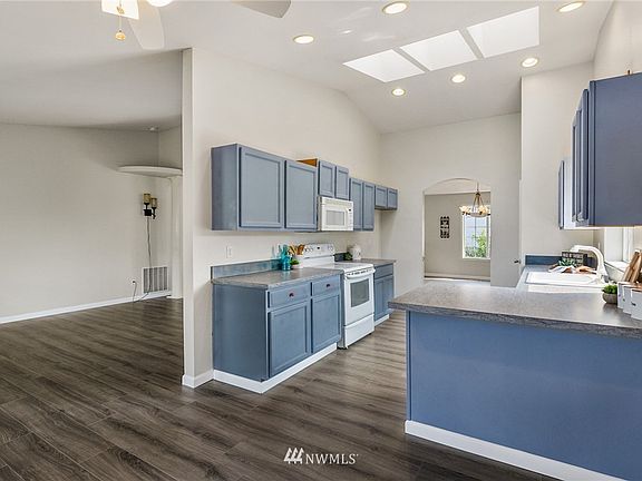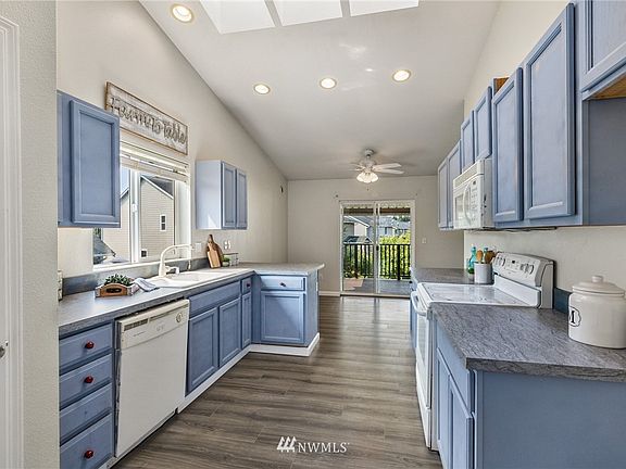 Welcome home to this 5 bedroom, 3 bath home located on a quiet street. Ft a split level floor plan w/ vaulted ceilings making the home feel open and airy. The spacious living area is ready for you to make it your own. The kitchen has an eat at bar, plenty of cabinets for storage, & a pantry. Formal dining area off of the kitchen. Enjoy the view from the deck off the eat in kitchen dining area. The master has a walk in closet & an attached 5 piece bath that includes a large soaking tub. Down stairs you'll find a second living area, 2 more bedrooms, and a full bath. Entertain in the fully fenced large backyard. RV Parking on side of home. Quick commute to JBLM.