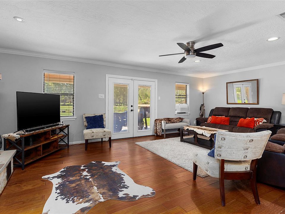 Open and breezy 28x30 covered carport with composite roof is perfect for parties, parking, or can be enclosed for a garage. The 1,200 sq ft shop has been divided in half to create a Flex Room in the back. Partially built out with materials on site. 8-stall barn with extra-large stalls plus pole barn for RVs, tractors, mowers, and ATVs. Two additional stalls on property. Cross-fenced for horses. One-acre pond with pier and covered deck. Water and septic in three additional areas for multi-generational living.No flooding. Just 15 minutes to all amenities of The Woodlands. Drive out, walk the land and see what a treasure this place is.