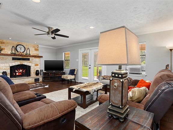 Unrestricted and a truly exceptional property! Texas country living on this 10-acre property. Peaceful and quiet. Beautifully remodeled 3/2 home. Large kitchen opens to the living area with Austin Stone fireplace.French doors lead to the back patio overlooking the pond and back pastures.Covered veranda wraps around the home. Whole-home generator.