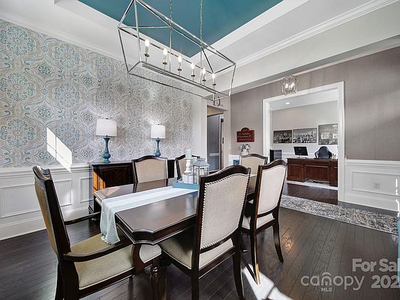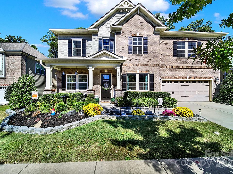 Prepare to be impressed! This stunning home, built in 2019, shows like a model. The open floor plan is flooded w natural light, highlighting the gourmet kitchen with an oversized island, five-burner gas cooktop w vented hood, stainless-steel appliances & whole house water filtration system. The main floor features a luxurious primary suite with a walk-in closet, tiled walk-in shower, and a large soaking tub. You’ll also find a dedicated office with french doors, formal dining room, and a welcoming great room with a gas fireplace—perfect for entertaining. Upstairs offers 4 additional bedrooms, 2 full baths, and a spacious loft. Hardwood floors flow through the main living areas, with tile in the baths. Step outside to a beautifully hardscape patio with a fireplace & built-in grill station, all set within a private backyard retreat. This vibrant community boasts a clubhouse, pool, 2 playgrounds, 2 ponds, & scenic walking trail—all within walking distance to dining options. Welcome home!