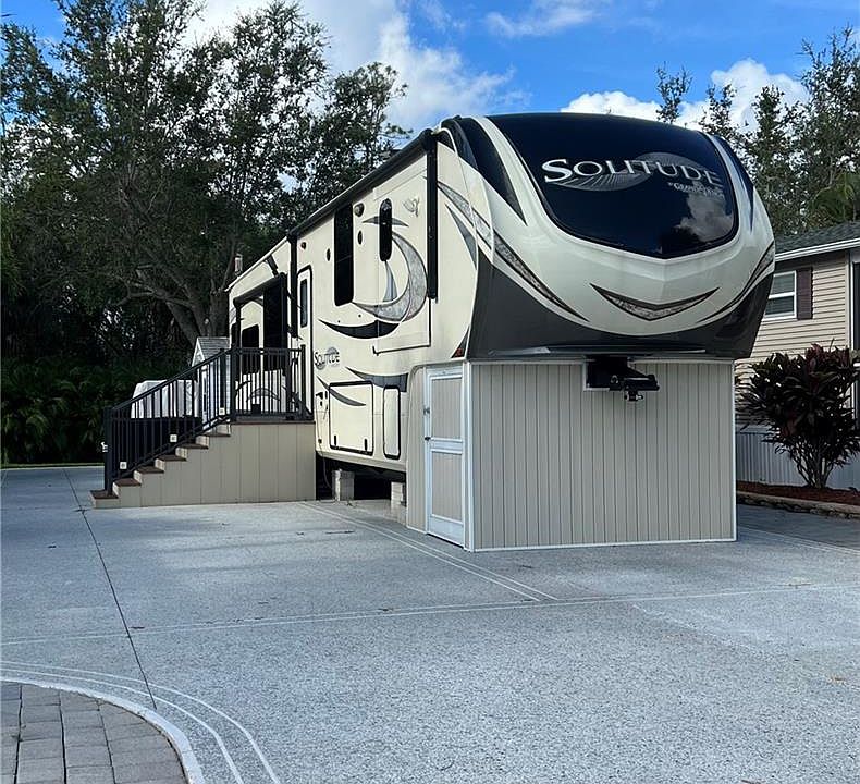 SILVER LAKES R/V and GOLF RESORT where YOU OWN YOUR LAND... Not a Lease. Don't miss the opportunity to this Beautifully maintained lot with 2017 Grand Design Fifth Wheel - 40’ Solitude 384 GK and Shed. Features Included are La-Z-Boy Theatre Seating, Pavered Drive for added width and Full Landscaping. Amenities Included are: Water, Sewer, Cable T.V., Tel. availability, 9 hole executive golf course, Three Heated Swimming Pools and 2 Jacuzzi Tubs, All weather tennis court, Pickleball, Shuffleboards, Welcome Center, Clubhouse with dance floor and banquet facilities, Fitness center, Pool tables, Library, Laundries, Restrooms with showers, Planned Social activities and events. Gated Community. Possible "Lot Only" Option