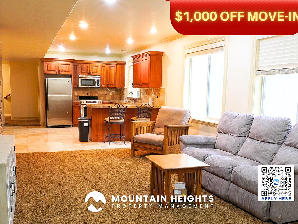 This executive and spacious 2-Bedroom Basement Apartment in Millcreek with separate entrance, features a large living room, modern kitchen with stainless steel appliances, and a flexible layout where one bedroom can be used as an office. This unit includes a full bathroom, laundry room with washer and dryer, and one garage parking space, offering approximately 1,200 sq. ft. of comfortable living close to shopping, dining, and easy access to downtown Salt Lake City.