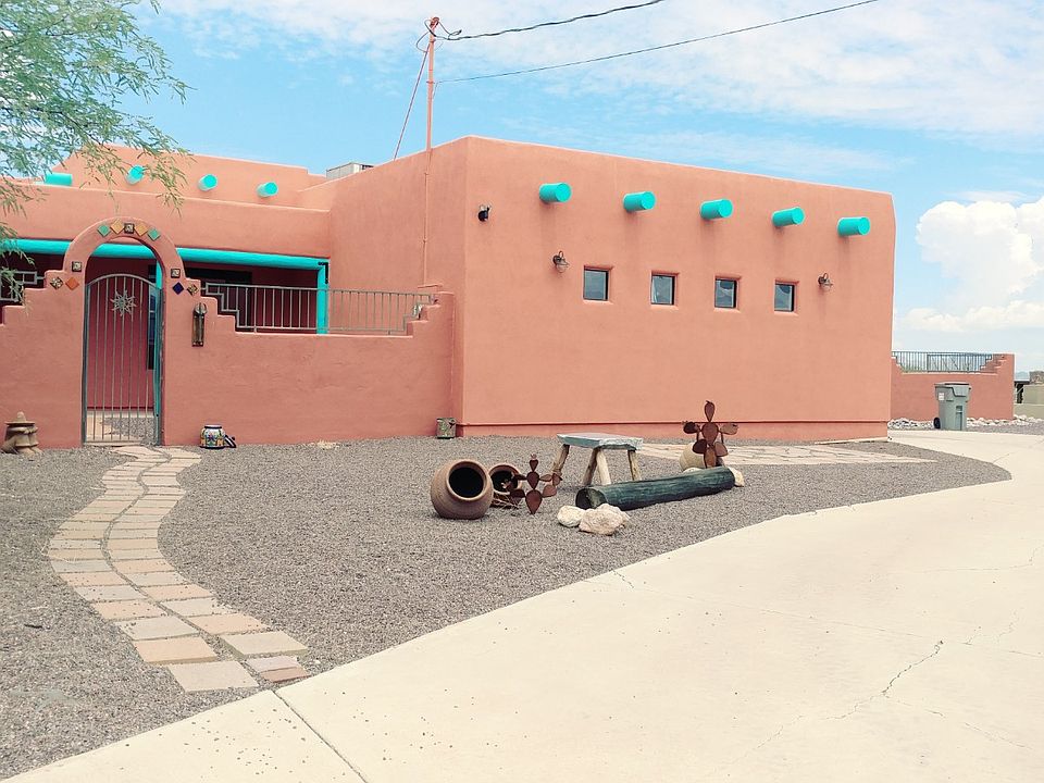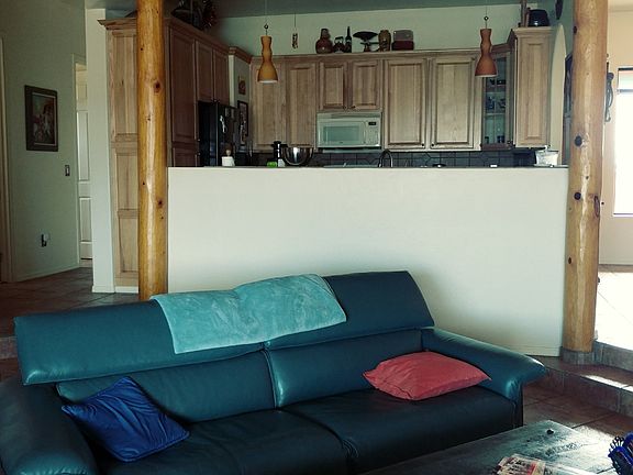 Lovely Santa Fe style home surrounded by beautiful mountain views. Sip your favorite beverage and entertain from the rear covered patio and enjoy a fabulous Arizona sunset. Large side yard would be great for boat, Rec toys, pool or guest house. Home has a soft water loop, work bench in garage, covered patios and front courtyard, all with mountain views. All tile floors except guest bedrooms, laundry room, one propane gas fueled fireplace in living room, formal dining area and split floor plan. High beamed ceilings, fans and property is completely walled in for privacy with wrought iron fence along rear to allow views. Quiet neighborhood, close to I-19, schools and shopping. Home Warranty plan included. Don't miss this lovely well maintained home.