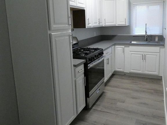 COMPLETELY REMODELED 1BED/1BATH This completely remolded upstairs apartment features, luminous new wood vinyl click flooring, new gas stove, new kitchen cabinets and a microwave. This cozy unit also has a gas wall heater fresh full two tone accent paint throughout the unit, includes window blinds. For your convenience there is a garage available for an additional $100 monthly rent, otherwise street parking only. To Qualify: Credit score must be no less than 550