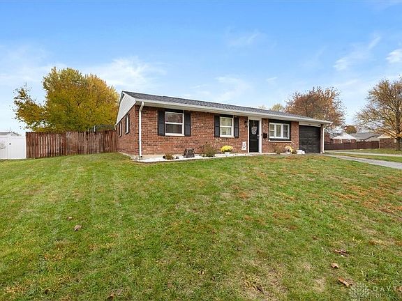 Discover this charming brick ranch home featuring three bedrooms and one full bathroom, perfectly positioned on a spacious corner lot. Step inside to find newer vinyl flooring flowing throughout the main living areas, creating a cohesive and modern feel. The cozy living room provides an inviting space for relaxation. The heart of the home showcases a beautifully renovated kitchen equipped with stunning quartz countertops, large pantry cabinet, and a professionally installed ceramic subway tile backsplash that adds both style and functionality. Adjacent to the kitchen, you will find a convenient laundry area with storage shelving. The home offers three comfortable bedrooms, including new updated flooring and trim in the third bedroom . The full bathroom features a practical tub and shower combination with tiled flooring. Freshly painted ceilings and trim throughout the entire home, complemented by updated lighting fixtures that enhance the overall ambiance. Step outside through the sliding glass door to discover a concrete patio area that seamlessly connects to a large, fenced backyard – perfect for outdoor entertaining, gardening, or simply enjoying privacy. Recent improvements include new insulation installed in the attic during 2023, along with an attic fan for improved energy efficiency and comfort. This loved property combines classic brick exterior charm with thoughtful interior updates, creating a perfect blend of comfort and style. The generous lot size provides ample outdoor space. The deep attached 1 car garage with opener provides attic access and extra storage possibilities. Whether you are a first-time buyer or looking to downsize, this move-in ready home presents an excellent opportunity to enjoy a low maintenance home and comes with a 1 yr. home warranty for added peace of mind. Don't miss out on the opportunity to make this your new home and call to schedule your showing today !