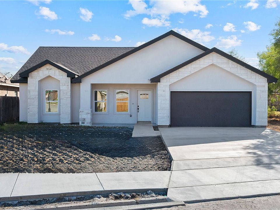 NEW CONSTRUCTION 3-bedroom, 2-bath residence—a seamless blend of luxury and livability in Kingsville’s coveted Wildwood subdivision. Inside discover 1,465 sq ft of thoughtfully designed space, where an open-concept luxury layout invites effortless entertaining and relaxed daily living. A chef-inspired kitchen shines with a very spacious island, gleaming quartz countertops, and sleek ceramic tile flooring. Distinctive, high-end light fixtures add a touch of artistic flair and elevate the ambiance throughout. Spray foam insulation and soaring ceilings. The primary suite features a double vanity and big shower. Enjoy the ease of indoor-outdoor living with a welcoming covered front porch and a generous back patio overlooking a nicely sized backyard—perfect for weekend gatherings or peaceful evenings. A built-in sprinkler system ensures your landscape stays lush year-round. Ideally located just minutes from Texas A&M University–Kingsville, Naval Air Station Kingsville, local hospitals, grocery stores, and downtown attractions, this home offers both convenience and connection. Tour this beauty today! Built by Muniz Construction.