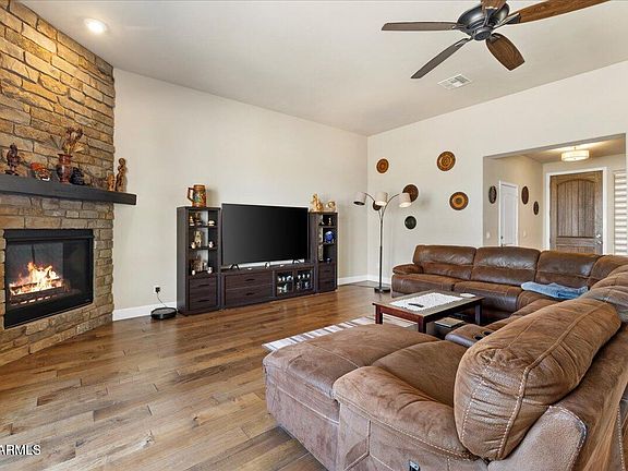 Located in the desirable Mollie Rae Subdivision you'll enjoy sweeping mountain views while staying close to in-town conveniences. This stunning single-story home offers 2,172 sq. ft. of modern living space with 3 bedrooms, 2 bathrooms, and a 3-car garage, all situated on approximately one acre. Enjoy the perfect blend of comfort and efficiency with 9' ceilings, luxury engineered wood flooring throughout, granite countertops, and stainless-steel appliances. Spacious open floorplan. Beautiful kitchen with island, upgraded cabinets, large pantry; all appliances are included. Flex space ideal for a formal dining room or office. Very spacious primary bedroom, primary bathroom has dual sink vanity, walk in shower and separate soaker tub. Very sizeable guest bedrooms. Prewired security system. Good size laundry room w/sink. Tankless water heater, seller owned water softener. Front and backyard landscaping complete with full extended covered patio, 15.5' deep, bbq stub and firepit. RV pad, extended driveway, 12' side gate. Plenty of room in back for RV garage or workshop. Handy 12x20 Weather King shed. Meticulously maintained and waiting for you!