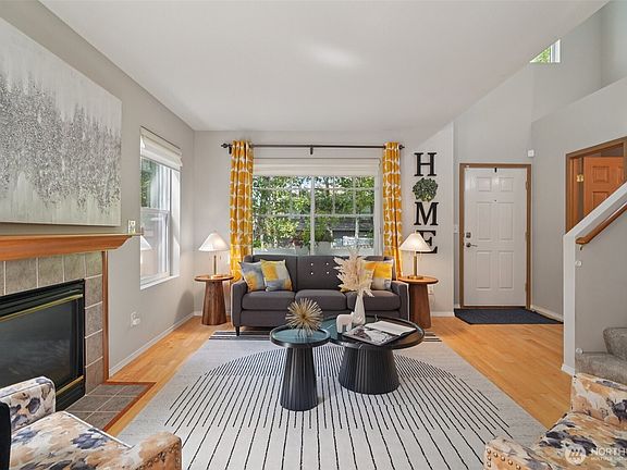 Private corner lot in Silver Firs - “The Cottages”. Charming 3-bd, 2.5 bath home in the desirable Silver Firs community. The spacious primary suite features a walk-in closet & a full bath. Two additional bedrooms & a full bath upstairs. The kitchen & bathrooms have been tastefully updated with stainless steel appliances and modern finishes . A cozy living room includes a gas fireplace and French doors that open to a large deck with a retractable awning & an easily maintainable yard. Hardwood floors on the main level & brand new carpet upstairs. Covered front patio, newer roof, air conditioning & 2-car garage. Tucked away on a quiet corner for added privacy, yet close to parks, trails, sport courts & part of top-rated school district.