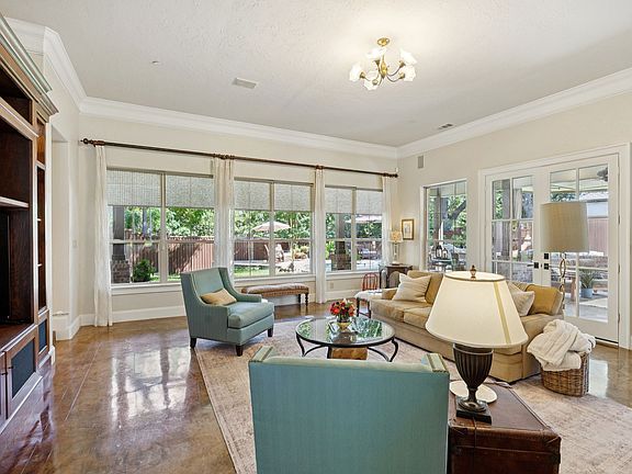 Cozy fireplaceSecond fireplaceLush half acre lotOutdoor loggiasExpansive windowsSun drenched living spacesFormal dining room