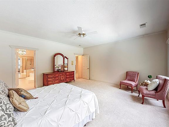 Wow this semi custom home is ready for you and your family. Bring your bathing suit and your BBQ pit and lets get started. Gated driveway with a well manicured front yard. This traditional home is amazing with mature trees and your very own POOL(Newly resurfaced)! Primary Bedroom and suite is ready for your king bed and sitting room furniture too! Enjoy this well built home with many added features like built ins - secret closets and storage - crown molding - glamorous chandeliers. Community has your perfect golf course with a restaurant and several meeting rooms for business meetings and fun gatherings. Bay Oaks will be your new address with lovely trails with community parks. Hurry this wont last!