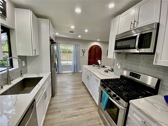 Charming Sherman Oaks Home with a Sparkling Pool, Just in Time for the Summer!!! This home was recently rehabbed with brand new shaker kitchen cabinets, calacatta quartz counter-tops, vinyl flooring, recessed lighting, stacked stoned fireplace, porcelain tile shower, brand new appliances and much more... The home is nestled in between many trees and bushes for privacy. The backyard features a swimming pool and large open area for cookouts, BBQ's, party's or to spend a quiet and relaxing day with the family. The garage was converted into a guest house and is currently being used as an Airbnb rental which brings in anywhere from $2,500-$3,000 in monthly income. Please check with city for permits. Located minutes away from Ventura Blvd, the 101 and 405 Fwy, this is an ideal place to live with top rated private and public schools. NOTE: First showings will be Saturday 5/9 from 12pm - 5pm. Appointment Only.