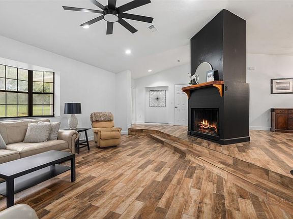 Completely updated concrete-block 4BR / 3BA retreat on 5+lush, canopy-covered acres alive with Florida wildlife such as barred owls, deer, gopher tortoises, wild turkeys and even a shy fox family. You’ll feel worlds away, yet Publix is just minutes up the road and UF Shands is a quick 25-minute drive. Big-ticket items handled: 2022 roof, 2021 HVAC, two new water heaters in 2025. A full-scale 2025 renovation brought luxury wood grain porcelain tiles, 5'' baseboards, fresh interior/exterior paint, new French doors, stylish lighting & fans, three remodeled baths, and a show-stopping kitchen with quartz counters, stainless appliances and deep single-bowl sink. Cozy up to the wood burning fireplace, then step out to your covered and screened back porch, overlooking the expansive property. Turnkey privacy, abundant nature and city convenience. Schedule your tour today!